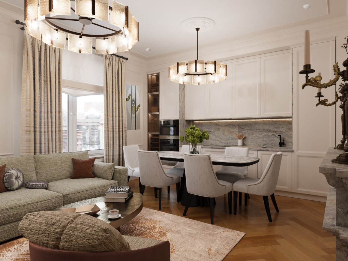 Выбранная стилистика - современная классика. Цветовые решения выбраны на основе картин русского художника Андрея Ремнева.
